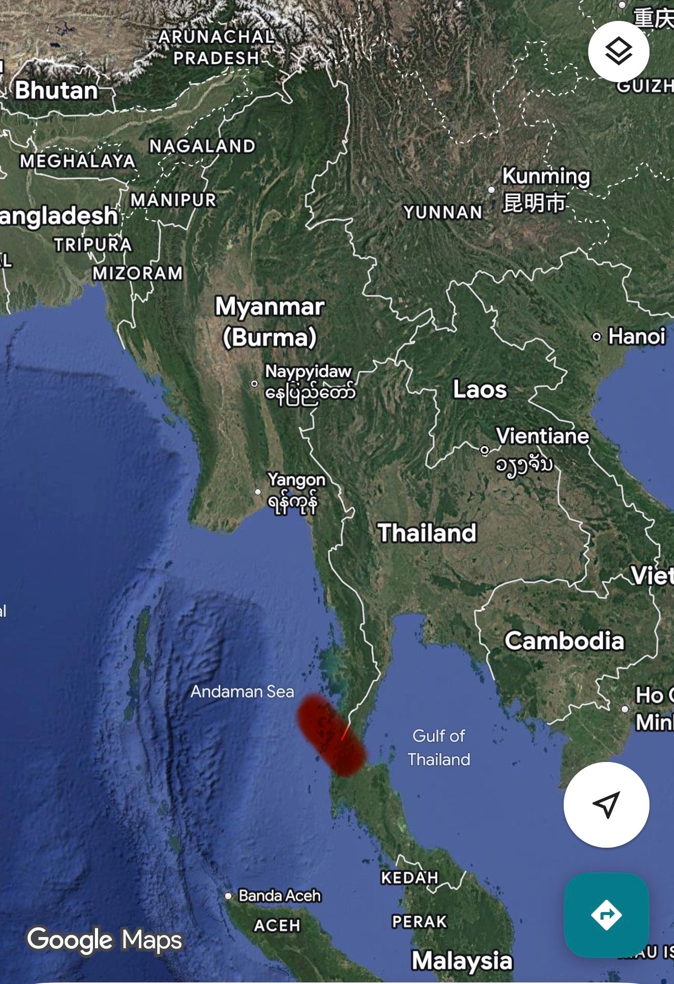This is a SOUTHERN Burmese oil, across the bay from Ranong (in Peninsular Thailand) - down at the very southern tip of Peninsular Burma / Myanmar..